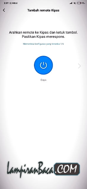 4. Setelah dipilih merk kipas angin Aucma kita. Kita diminta mencari tombol yang yang berfungsi. Mohon bersabar ikuti terus petunjuk yang ada di aplikasi mi remote dan jangan lupa arahkan inframerah Smartphone kita kepada kipas angin Miyako yang akan akan kita hidupkan. Apabila kipas angin Miyako nya memberikan respon silahkan di simpan pengaturannya.