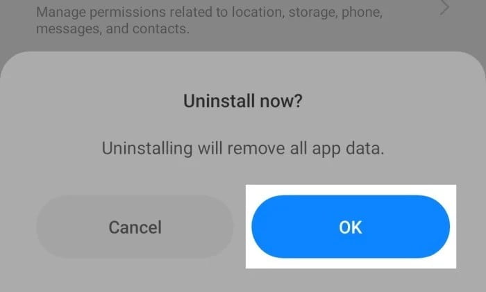 - Kemudian akan muncul notifikasi yang mengkonfirmasikan uninstall aplikasi. Silahkan tekan menu OK
